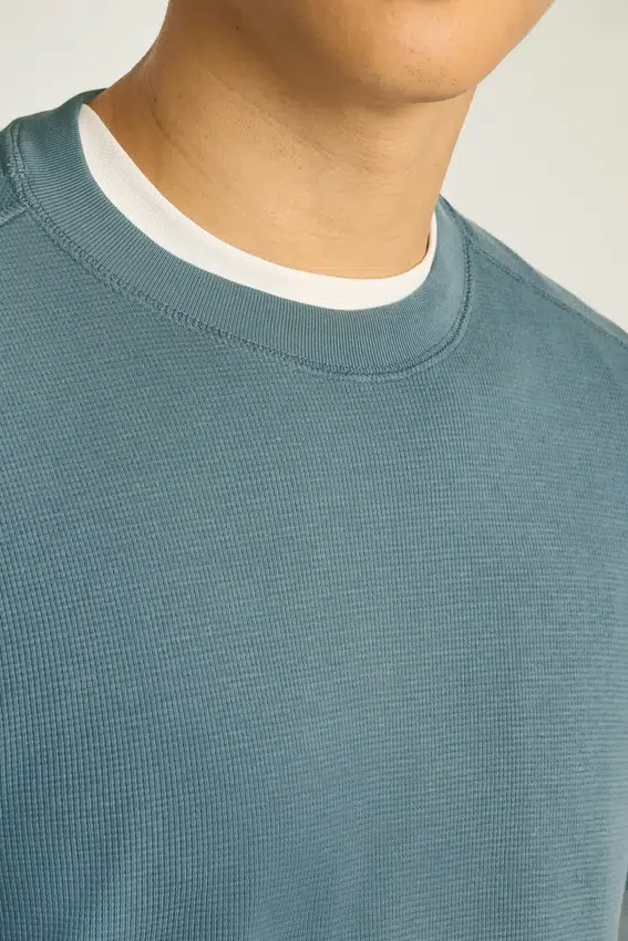 La douceur et le confort du coton avec une texture gaufrée, le tout dans un superbe t-shirt à col rond.